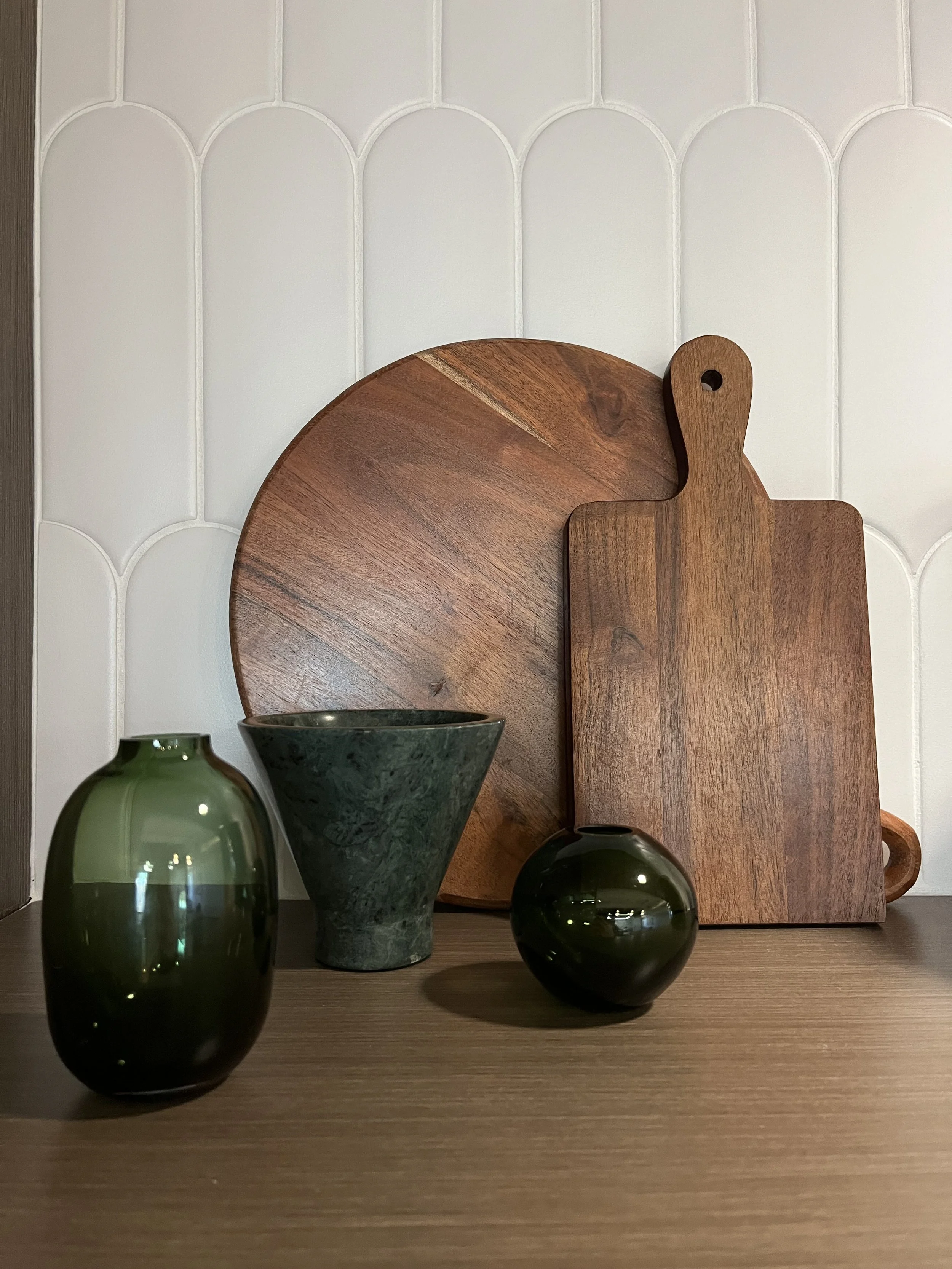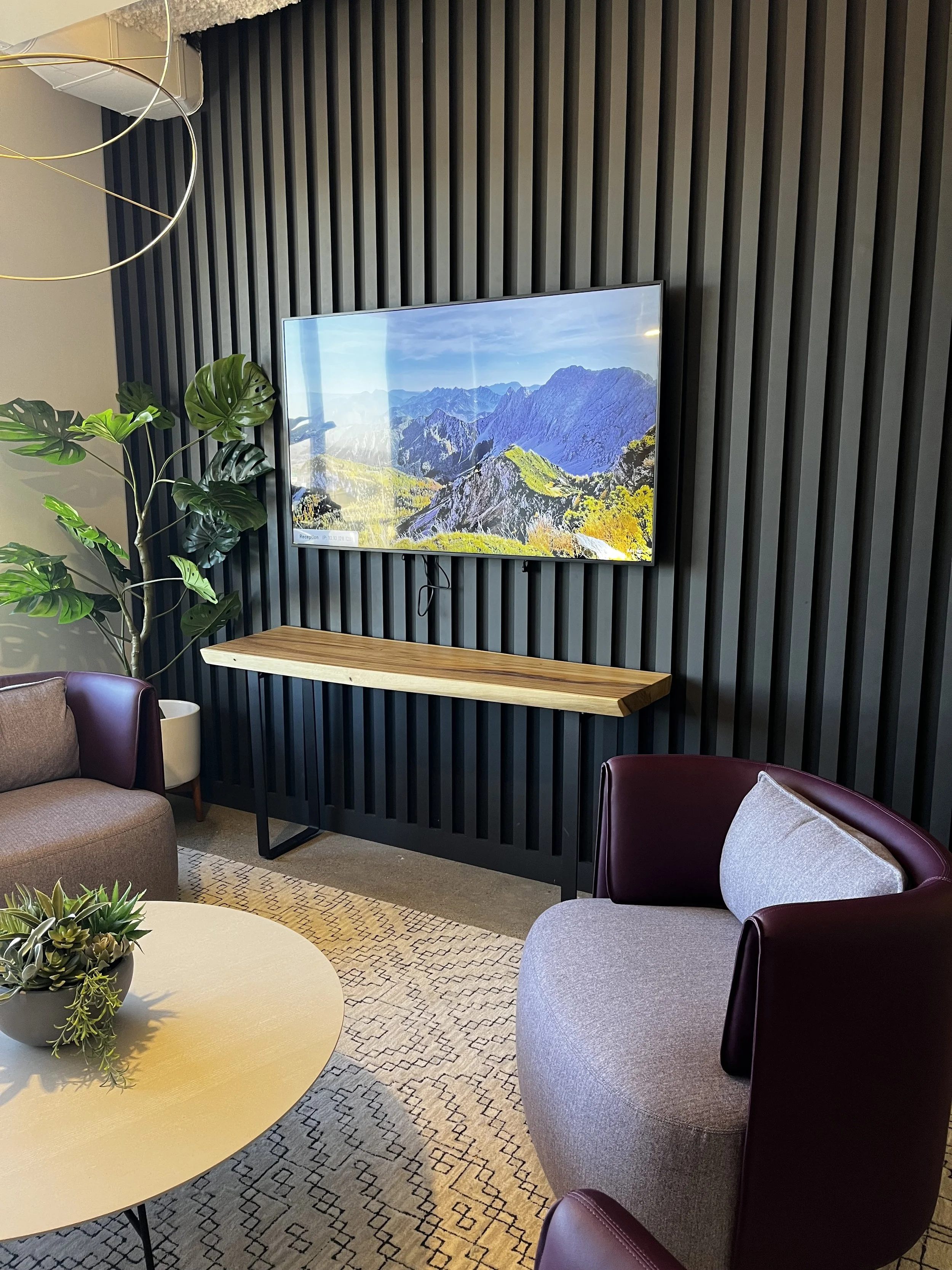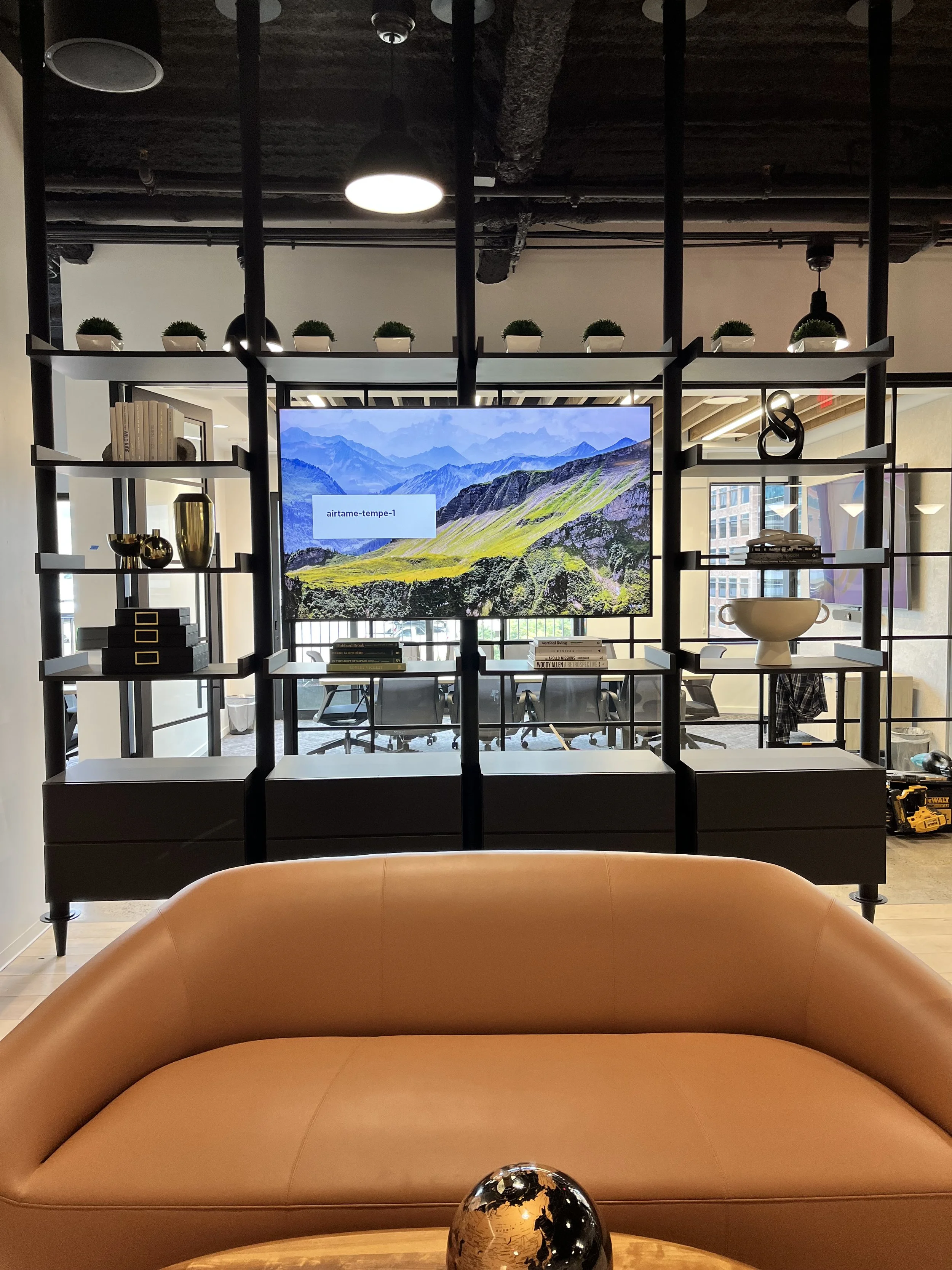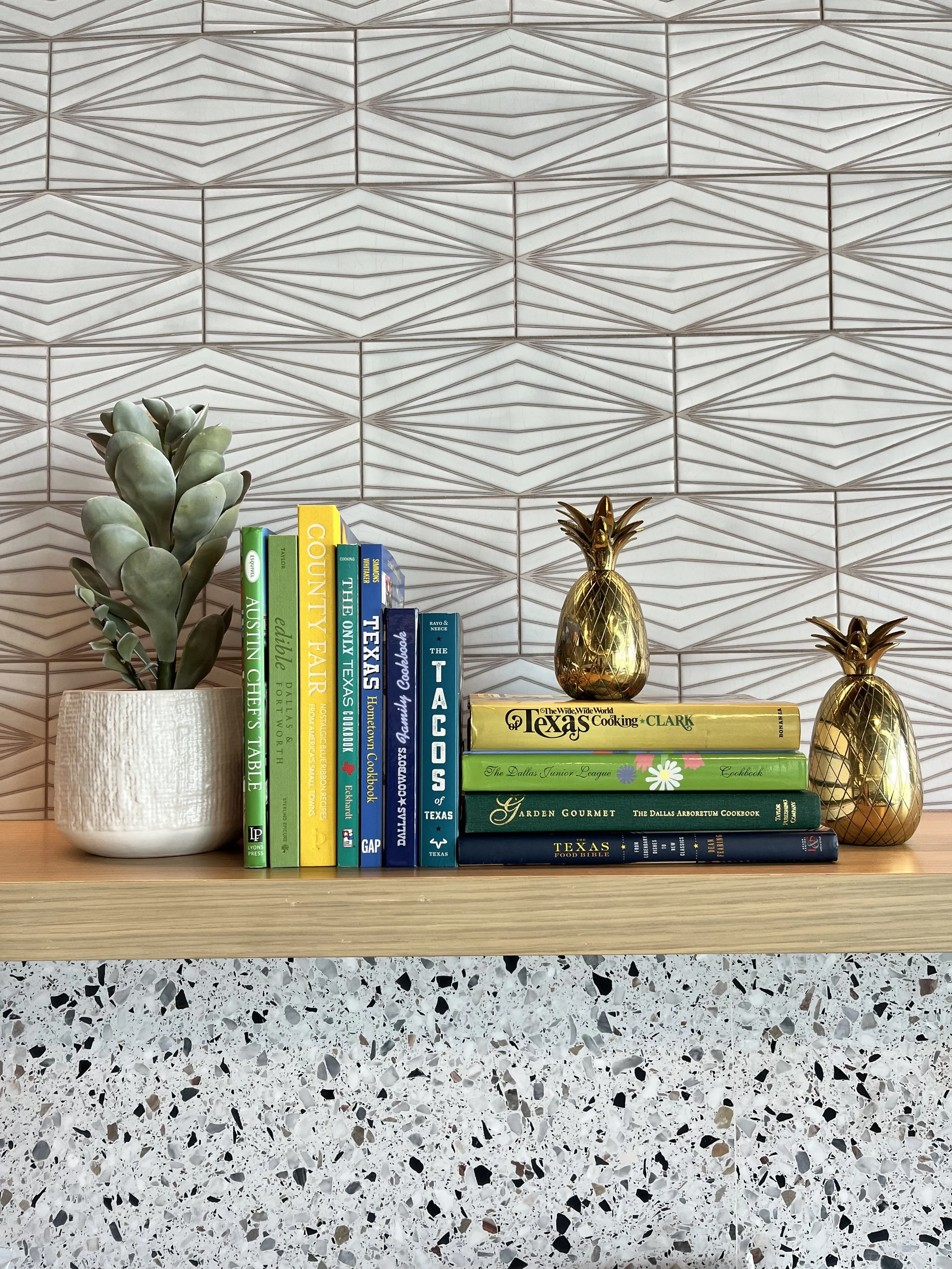 The inspiration for this space came from the Austin Proper hotel in Austin, Texas. I brought in an eclectic mix of pottery, brass, books and quirky art to match the edgy and cool vibe of the neighborhood where the office is located.